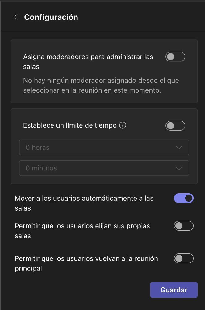 7. ¡Listo! Las salas quedarán activas para usarlas antes o durante la reunión.