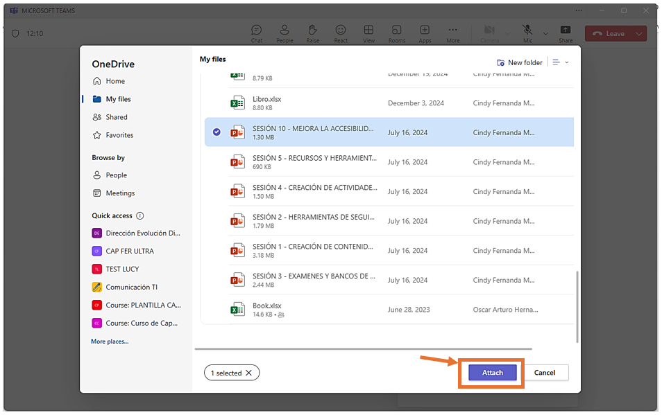 3. Selecciona el archivo que desees compartir en tiempo real durante la reunión y haz clic en Ajuntar/Attach.
