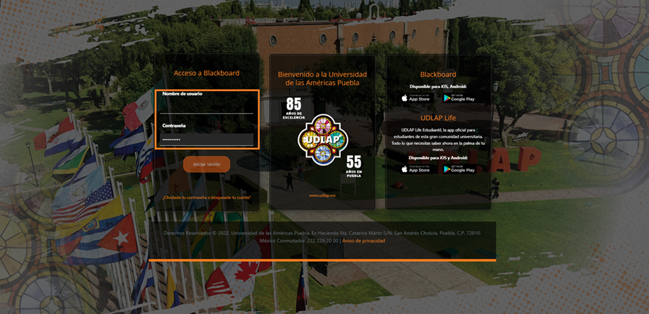 Inicie sesión en Blackboard: https://click.udlap.mx/.