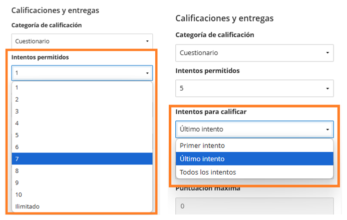 • Calificación final: Elegir entre “Mejor intento”, “Promedio” o “Último intento”.