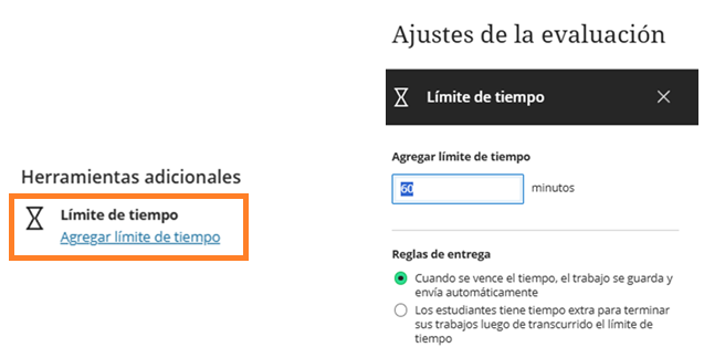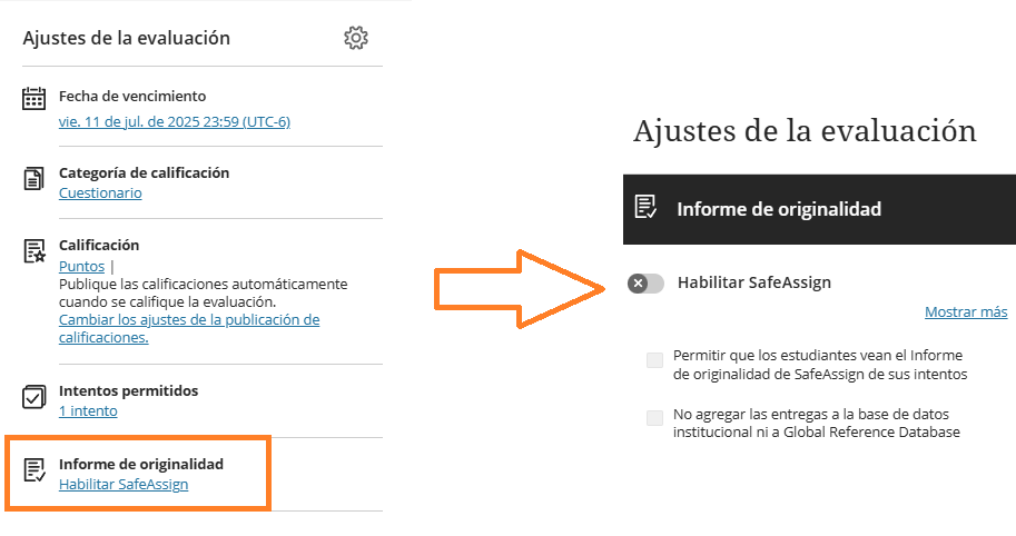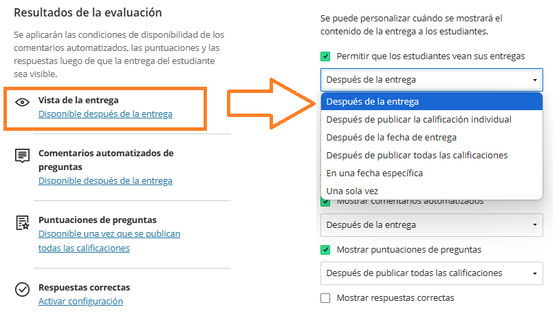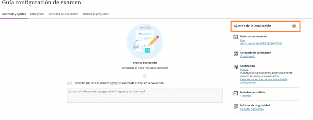 Haga clic en “Ajustes de la evaluación” (icono de engranaje) para ajustar: