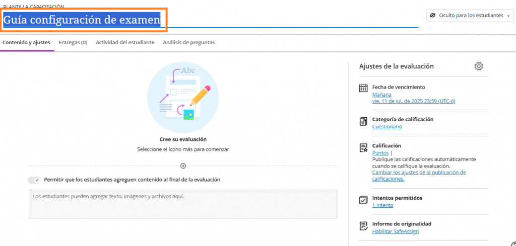 Guía Detallada: Configuración de Exámenes en Blackboard