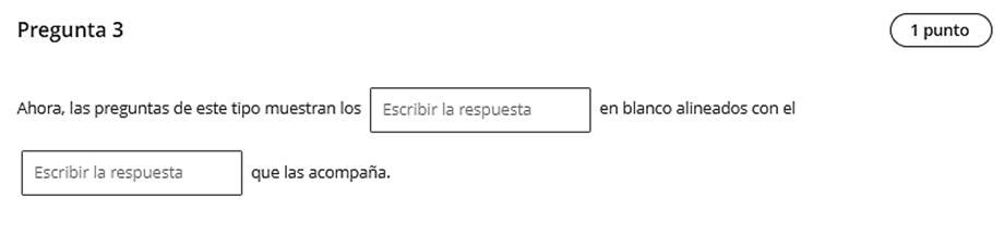 Ahora, las preguntas de este tipo muestran los espacios en blanco alineados con el texto que las acompaña. Esto permite que los estudiantes puedan visualizar con mayor claridad la oración, el párrafo o la tabla en la que deben completar la respuesta.